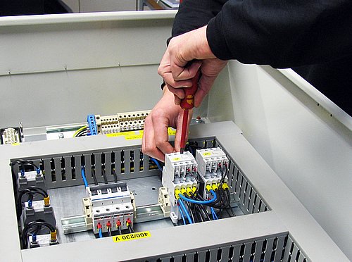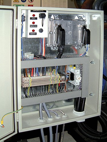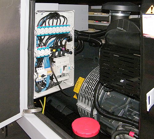 Abgestimmt auf die Notstromanlage des Kunden wird entsprechend die Elektronik in den Schaltschränken von uns aufgebaut. Vorgefertigt und vormontiert zum großen Teil in unserer hauseigenen Werkstatt, kommen der Schaltschrank und andere elektronische Bauteile vor Ort zum Einbau bzw. zum Anbau am Notstromaggregat.